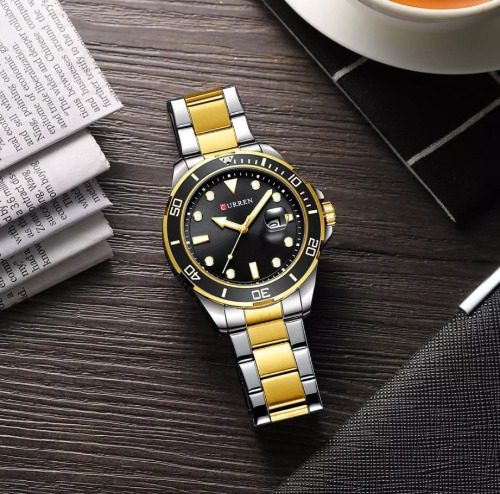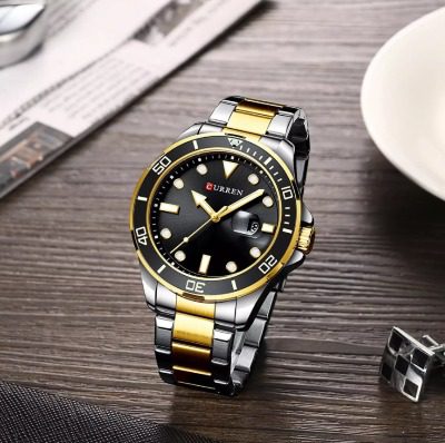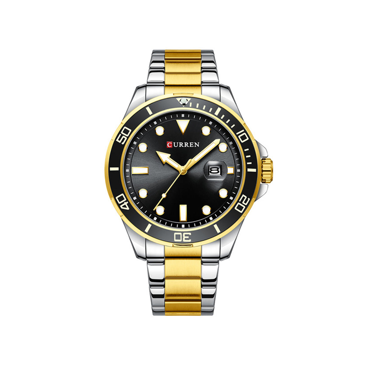 CURREN 8388 Chronograph Stainless Steel Watch for Men - Silver Gold & Black