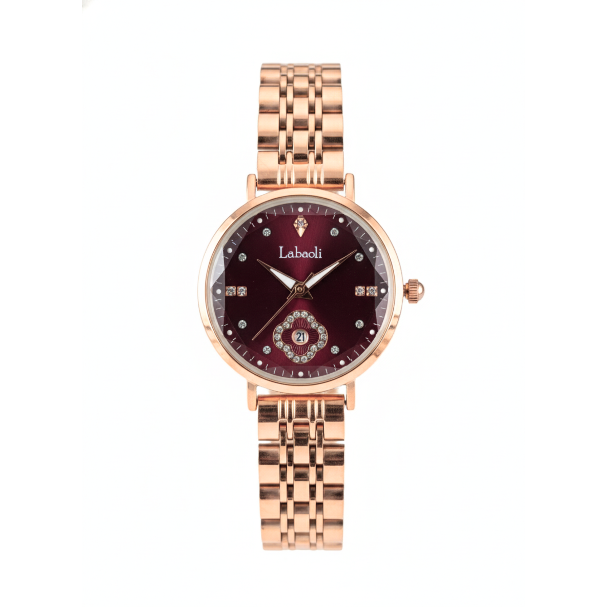 The Labaoli LA318M Women’s Stainless Steel Watch with Maroon Dial is a stunning fusion of modern elegance and luxurious detail, exclusively available at TimeCliq Bangladesh. Crafted for women who appreciate distinctive design and refined beauty, this watch makes a graceful style statement on any occasion.