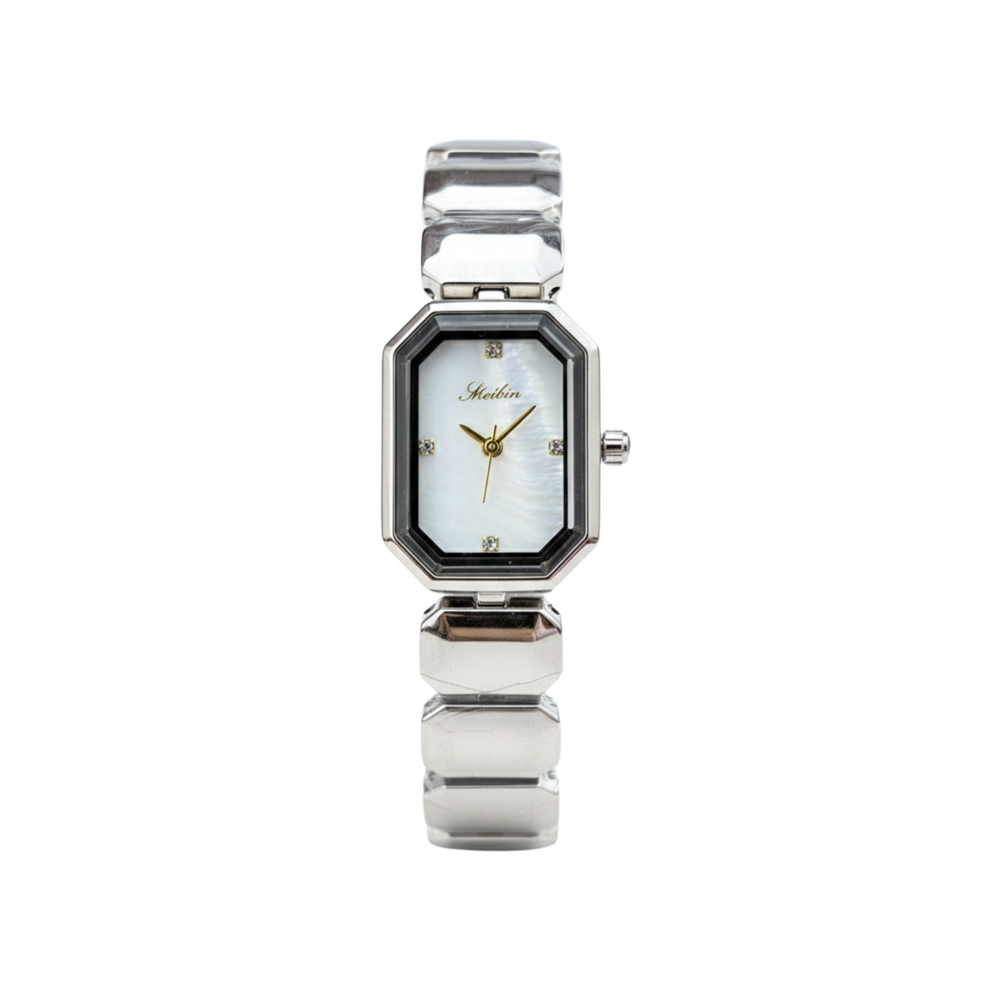 The Meibin M1878L brings timeless elegance to your wrist with its distinctive octagonal polished silver chain bracelet. The clean white dial offers excellent readability while maintaining a sophisticated aesthetic. This luxury timepiece combines refined craftsmanship with a versatile style that transitions seamlessly from everyday wear to formal occasions. Perfect for those who appreciate classic watchmaking and understated luxury.