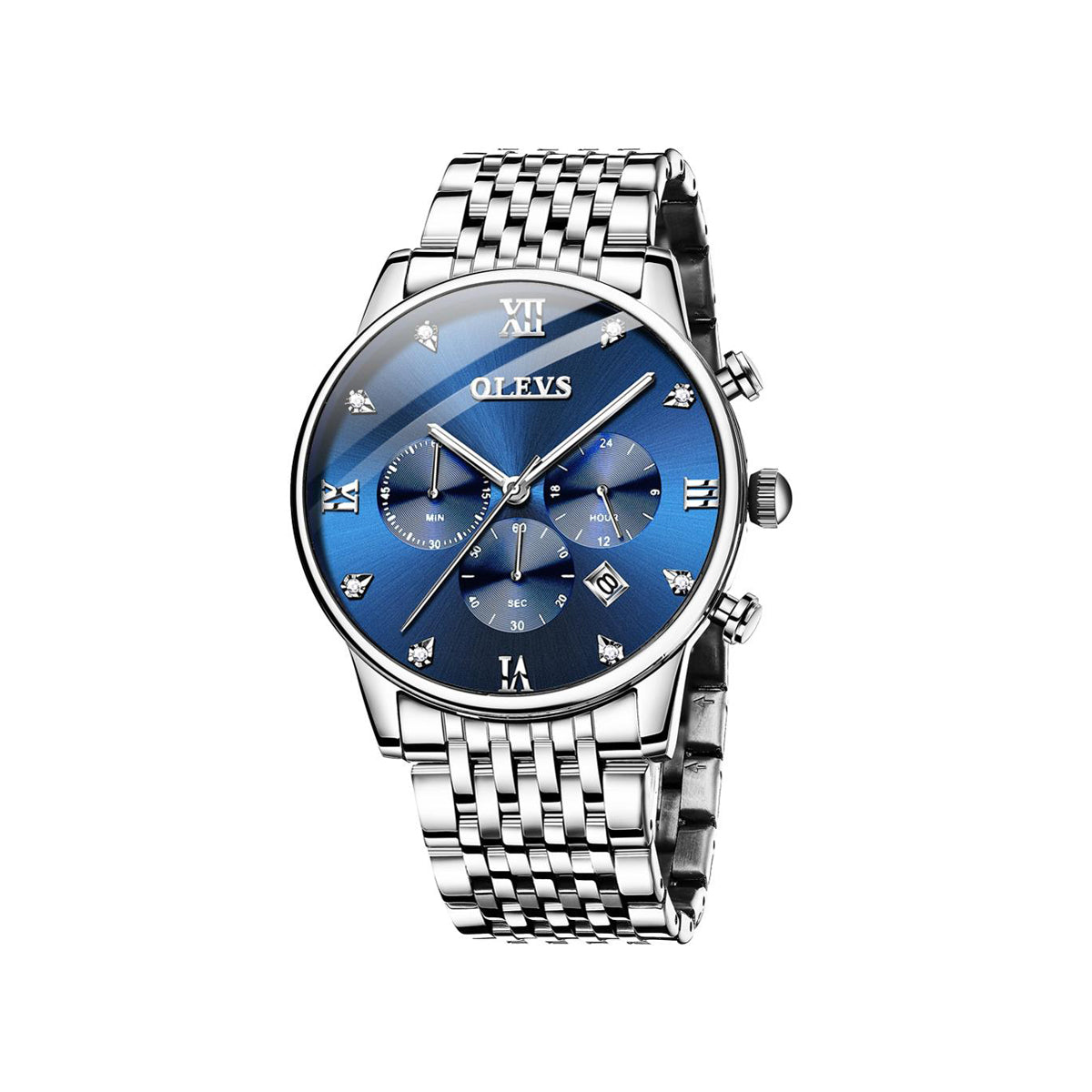 Olevs 2868 Stainless Steel Quartz Watch for Men - Silver & Blue