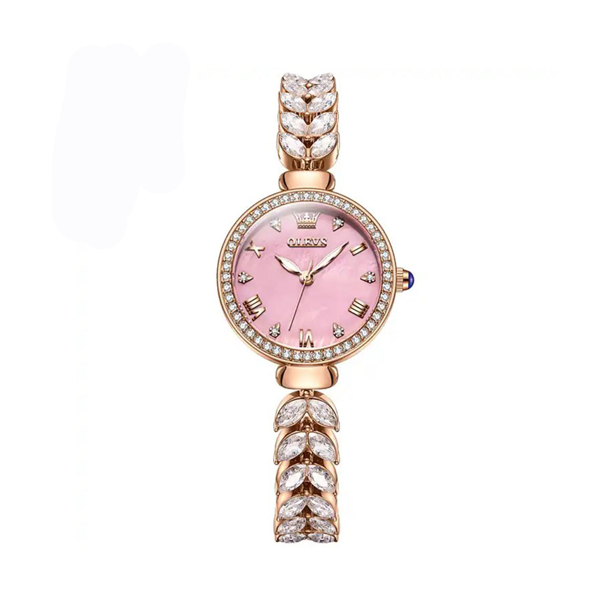 OLEVS 9971 Trendy Rhinestone Bracelet Watch For Women-Rose Gold & Pink