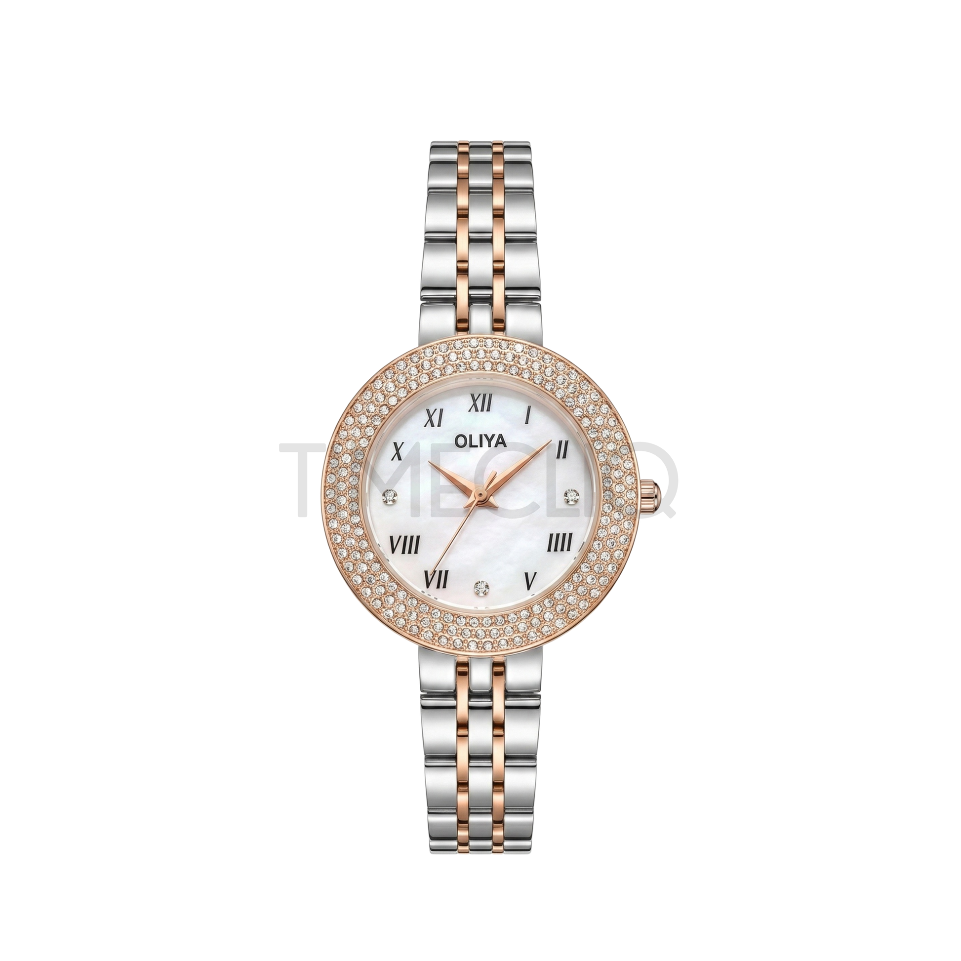 Oliya 6802 Women’s Two-Tone Watch with Crystal Stone Border | Time Cliq Bangladesh
