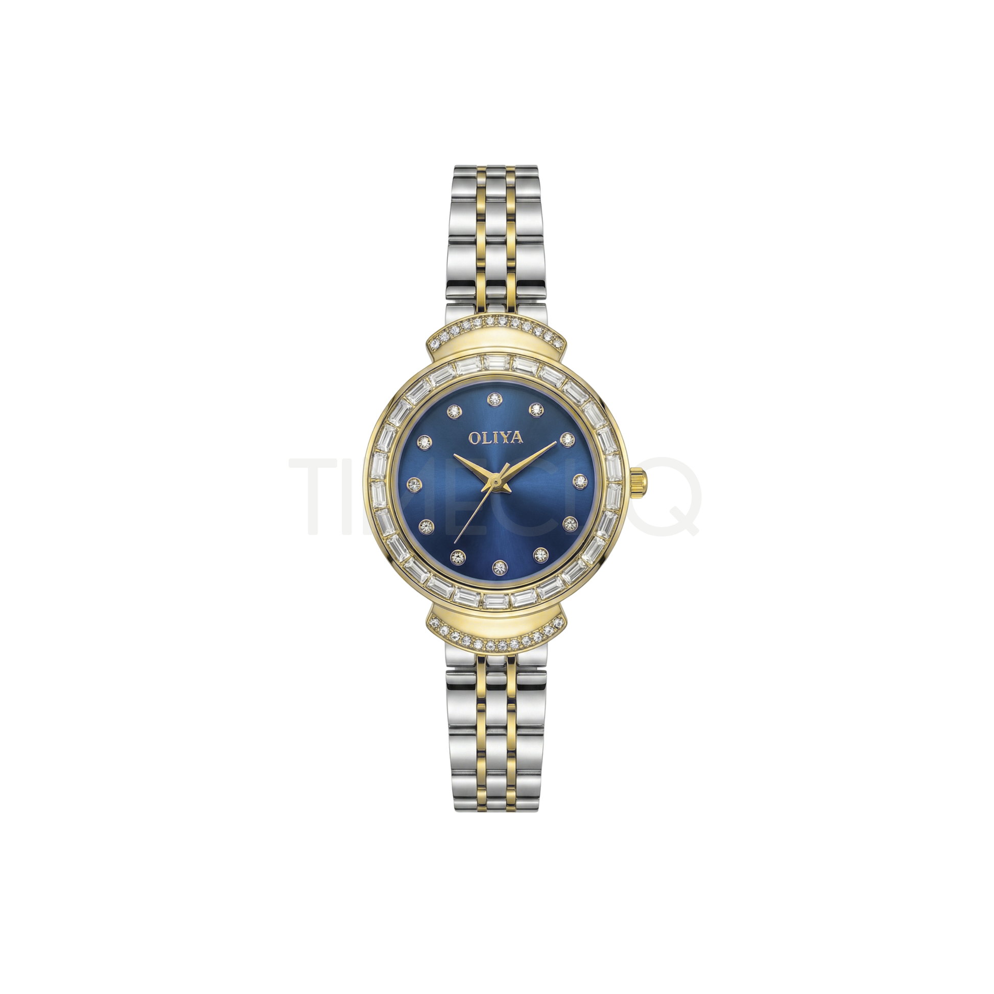 Oliya 6806 Luxury Stone Quartz Two Toned Ladies Watch-Blue dial