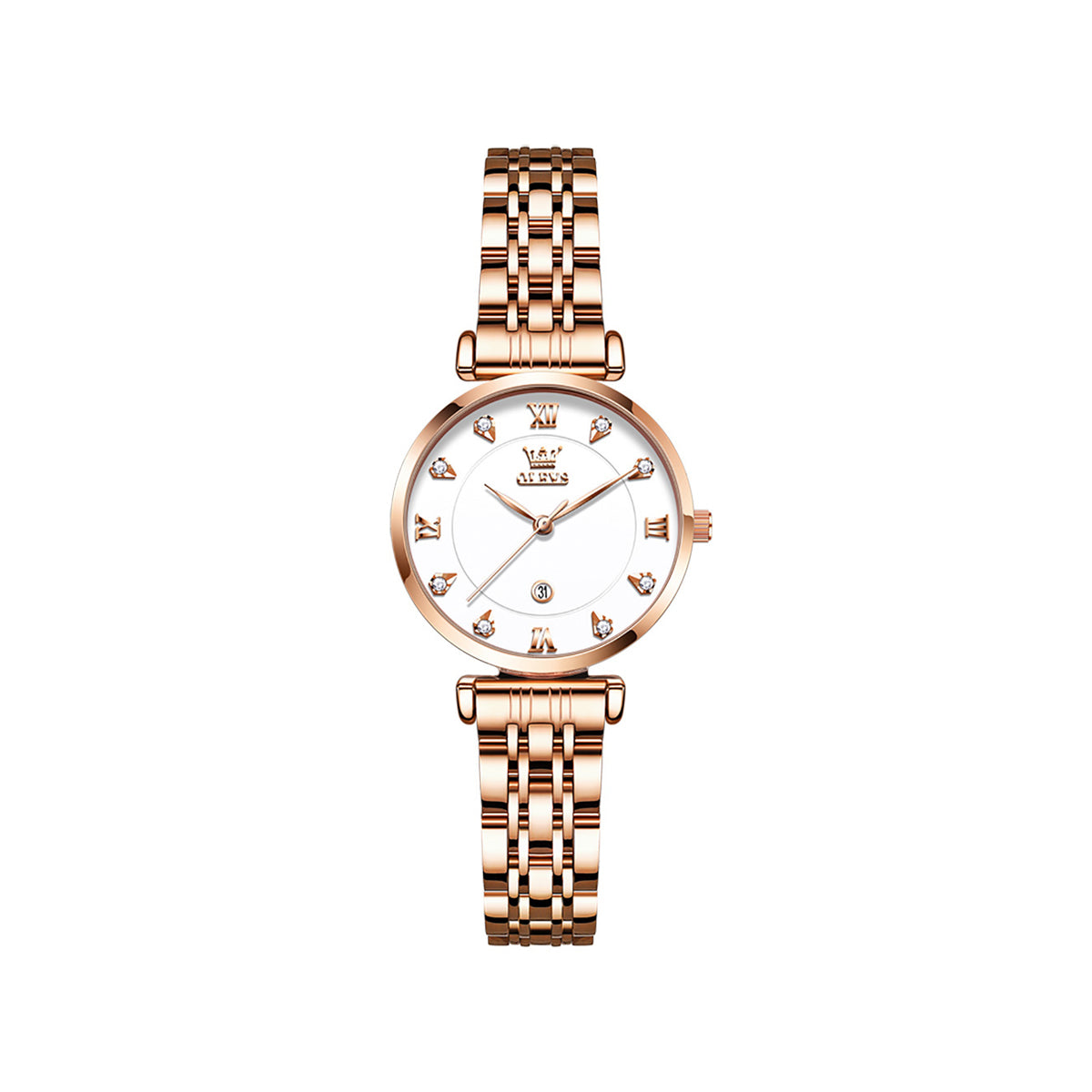 OLEVS 5866 Luxury Fashion Quartz watch for women- Rose Gold & white