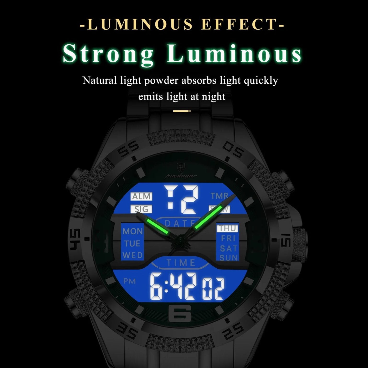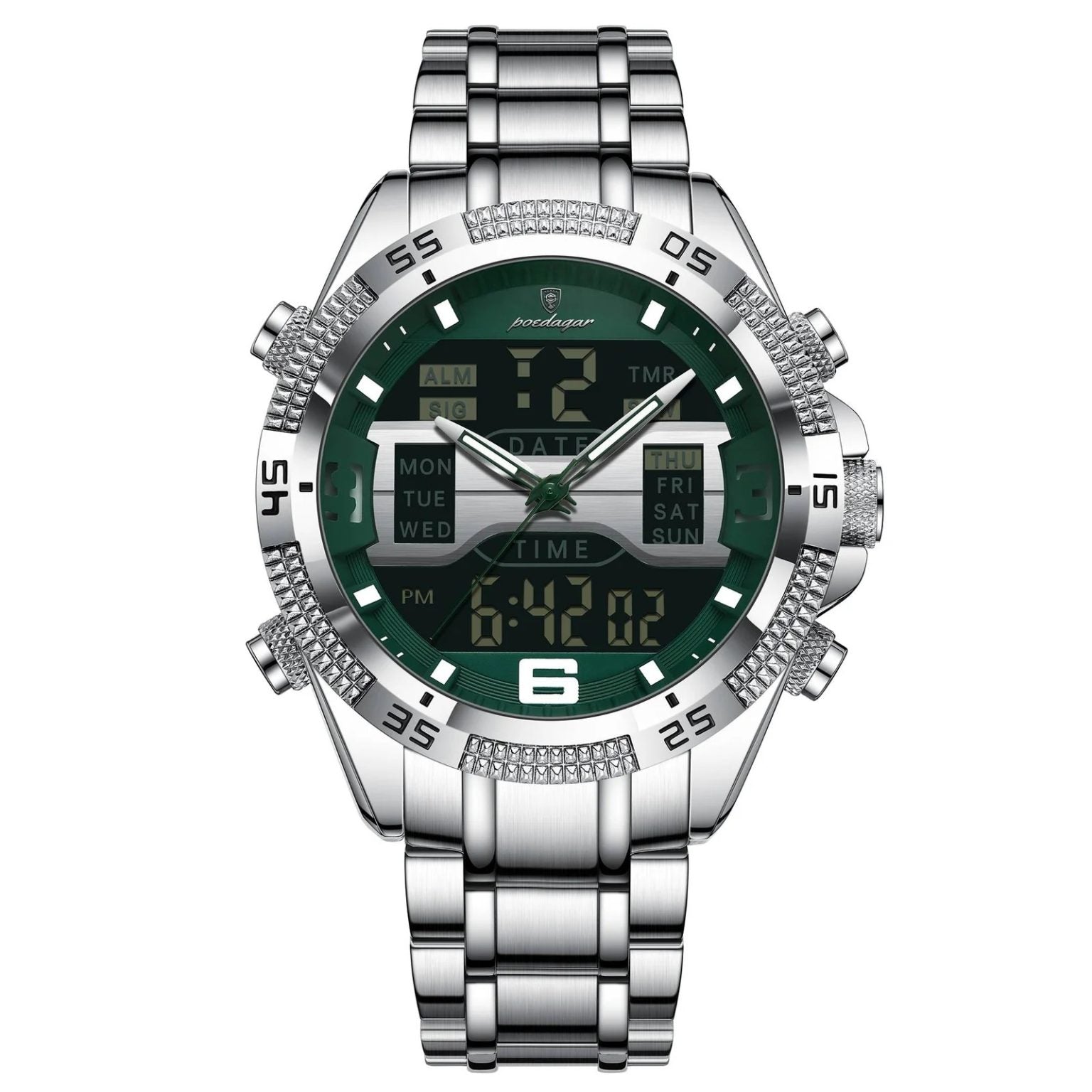 POEDAGAR 103 Luxury Sports Dual Time Men’s Watches-Silver Green