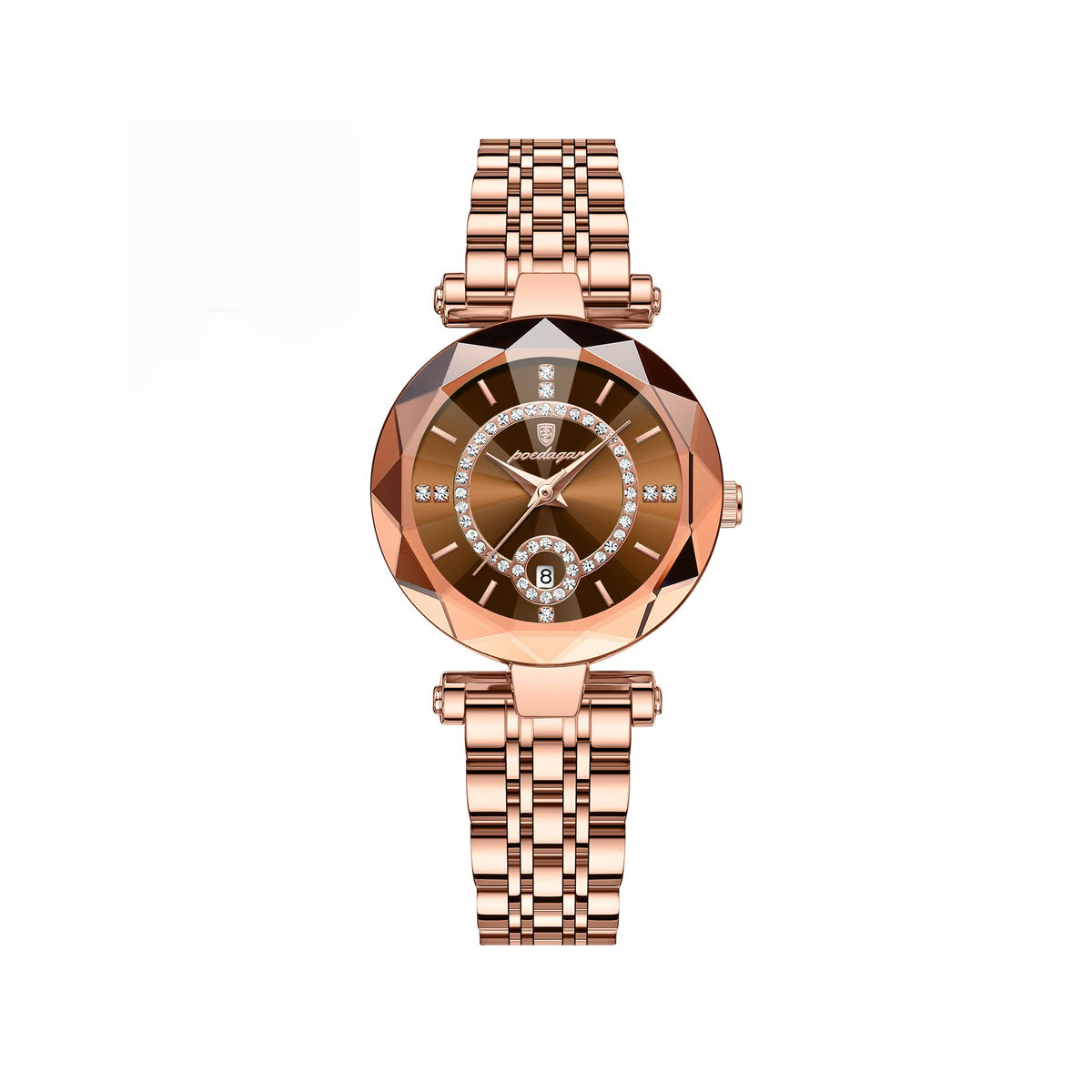 POEDAGAR 726 Luminous pointer stainless steel ladies Wristwatch- Rose Gold & Rosewood