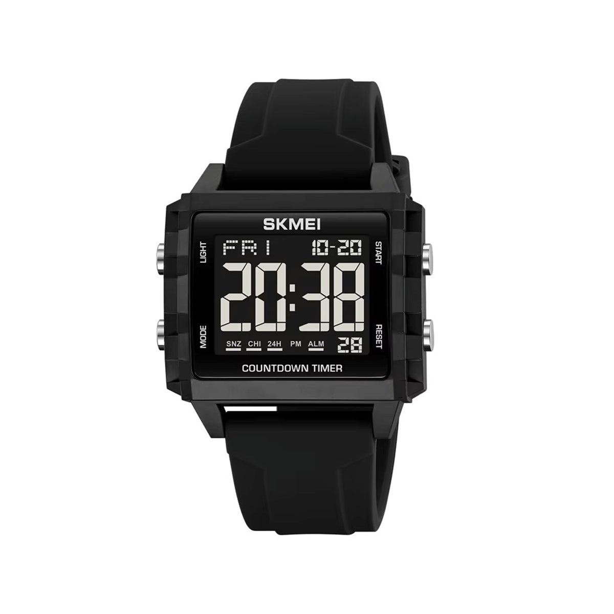 SKMEI 2320 Super Custom Face Digital Watch Best Silicone Band Rectangle Chronograph Sports Watch- Black