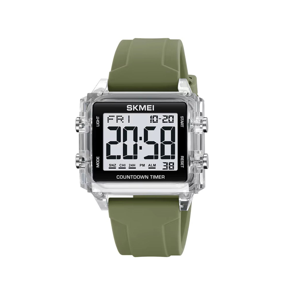 SKMEI 2320 Super Custom Face Digital Watch Best Silicone Band Rectangle Chronograph Sports Watch- Light Green & white